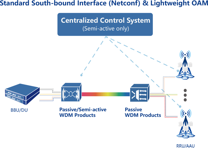 With the massive construction and rapid deployment of 4G/5G networks, the problems of shortage of optical fiber resources and difficult management of “Dumb resources” in base station fronthaul networks are becoming increasingly prominent. In order to solve the above-mentioned problems encountered in the construction of wireless network, Accelink Technology Co. Ltd. provides 5G fronthaul solution. The 5G fronthaul solution, through multiplexing techniques of multiple standards such as CWDM, LWDM, MWDM and DWDM, realizes the convergence of services transmitted by multiple optical fibers into a single optical fiber for transmission, improves the service efficiency of optical fiber cores, and achieves the purpose of saving optical fiber resources. Through the optical module pilot tone modulation technique and standard management and control interface of active equipment, it realizes the functions of monitoring, protection, management and alarm, and achieves the purpose of effectively managing the “dumb resources” of the fronthaul network.